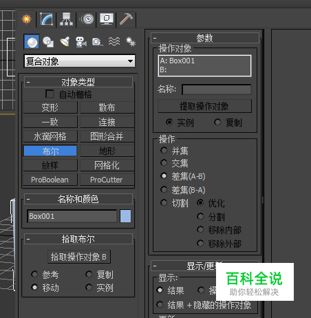 拾取操作对象B,即圆球,此时是差集(A-B)