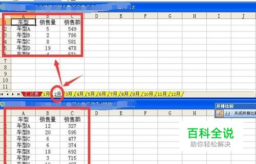 如下图所示工作薄中包含12个月的工作表,每个工作表中显示的是当月的各种车型的销售额和销售量的数据,