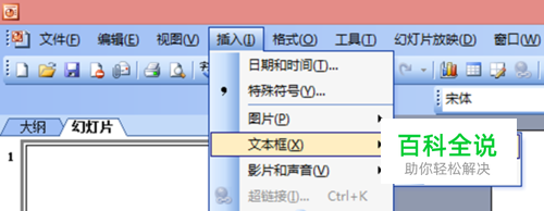 打开ppt,点击上方工具栏中的“插入”,在下拉框里选择“文本框——水平”。等到光标变成十字形,把光标移动到ppt的页面中,按住鼠标左键,在页面中划出文本框,并在文本框里输入文字。调整文字的大小,颜色字体等等。