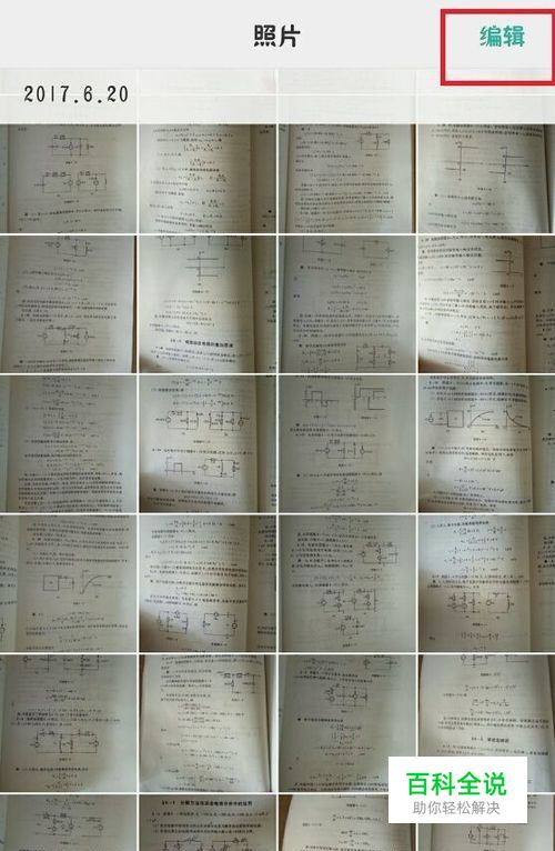 点开手机自带相册,找到将要进行分类的图片所在的图集。点击右上角的“编辑”。