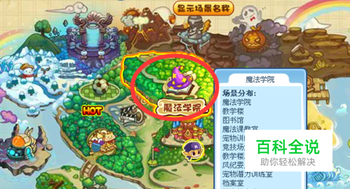 当你进入魔法学院,然后点击世界地图旁边的魔法学院字样。就会出来一个魔法学院的分布图。找到“宠物潜力训练室”点击进去。