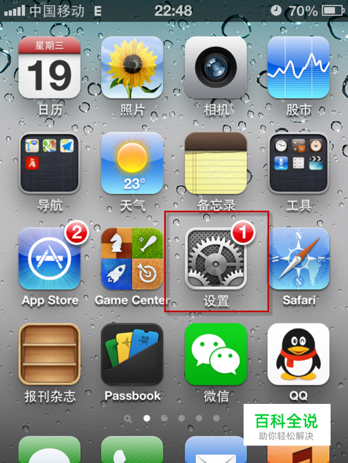 找到iphone手机中的“设置”选项,点击进入,如下图所示