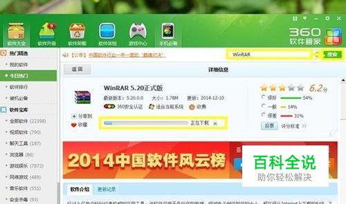 我们打开360,切换到到软件管理这一项,我们在搜索框输入winRAR,我们点击安装。安装的下载管理会提示你下载进度。