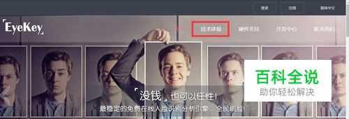 访问EyeKey生物识别云平台官方网站 www.eyekey.com。点击“技术体验”进入体验中心
