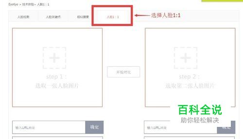 选择体验中心的“人脸1:1”功能