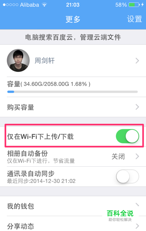 百度云如何设置文件仅在WiFi的状态下下载和上传