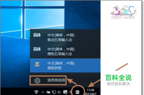 进入输入法设置界面,有两种方式,最简单是点击输入法任务栏所在位置。点击语言首选项,另外打开【设置】-【时间与语言】同样可以进入输入法设置界面。