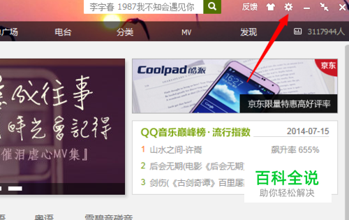 点击QQ音乐面板上右上角的齿轮符号设置按钮,并在菜单中选择“设置”选项。