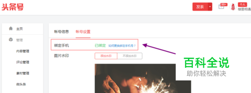 2、如果记得绑定的手机号,可以登录头条号后台,选择我的----系统设置----账号和绑定设置里面修改(需要注意的是绑定手机号和联系电话不一样),下面是详细过程