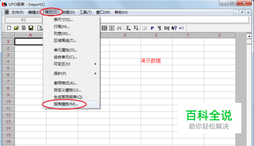 如图在“UFO报表”窗口点击“格式”菜单,选择“报表模版”。