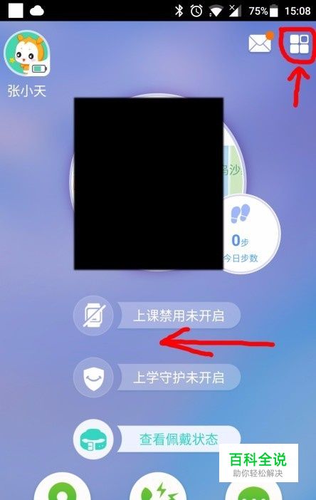 打开小天才电话手表APP,点击右上角图标或向左滑,进入功能页。