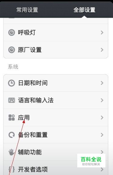 找到应用选项,点击进去、