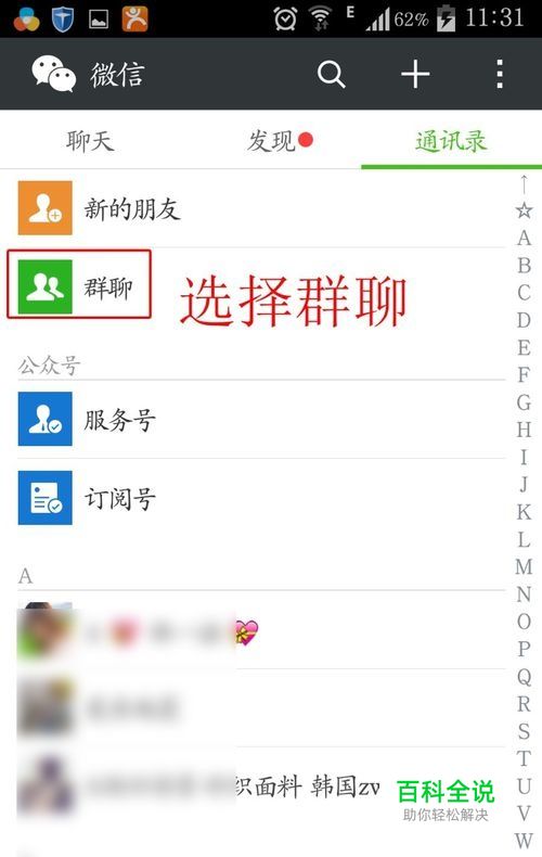 方法一:通过群组聊天来鉴别好友是否已经删除了你 1、首先我们打开微信,建立一个群组聊天。找到通讯录界面。选择群 聊。