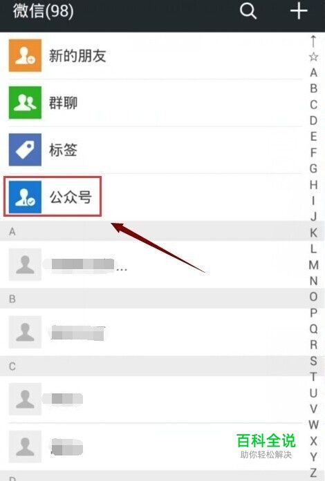 登陆微信,然后再点击【通讯录】选项下面的【公众号】