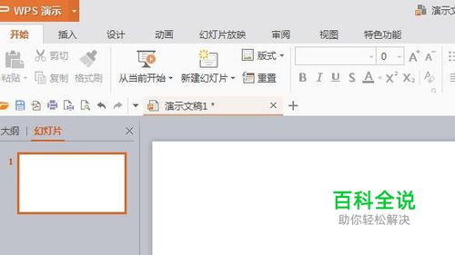 启动wps演示2016,新建一个幻灯片,把它设置为空白版式。