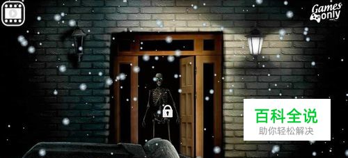 来到前门,用鼠标点几下门,门开了出现一个骷髅,点击左下方小黑框“物品包”选择“铁锄”然后在右边竖排选最下面“黄颜色的手掌”符号,点小红叉。“铁锄”在手,对着骷髅点一下,骷髅散架。