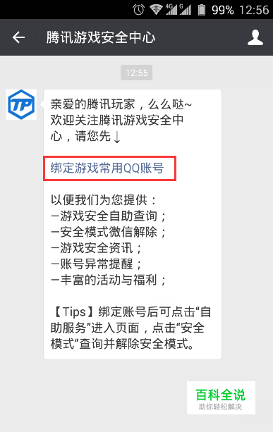 登录微信,搜索公众号“ 腾讯游戏安全中心”,然后关注官方微信、