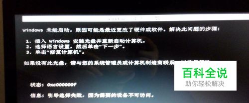 如果你的宏基电脑系统恰好出现如下图的问题,那么就也顺便帮到了你。小编亲身经历的得出方法,网上各种搜都没有解决,最后总算解决了问题进入了系统。