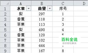 3.取消筛选,按D列排序,将全部“苹果”的数量排在一起。