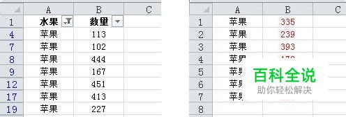 例如下图所示,左侧的“Sheet1”表的A、B两列包含一些水果名称及数量,现在需要用右侧“Sheet2”表B1:B7区域中的数值(用红色标识)替换“Sheet1”表筛选“苹果”后的数量。