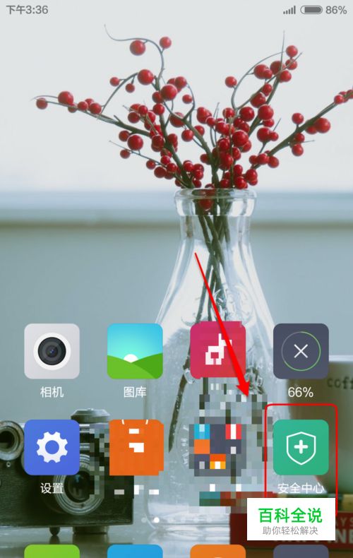 先打开您的手机,找到手机里面的“安全中心”,点进去。