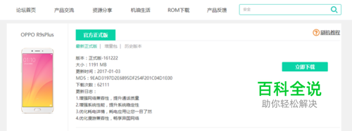 待进入与OPPO R9s手机相匹配的ROM下载界面后,点击“下载”按钮,就可以将ROM下载到本地计算机中进行保存。
