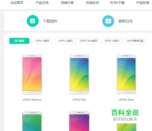 OPPO R9s手机刷机方法: 首先,我们需要进入OPPO官方网站,获取刷机ROM。如图所示,在OPPO官方网站,依次点击“ColorOS”-“ROM下载”,并在如图所示的界面中选择相关的R9S系统手机版本。