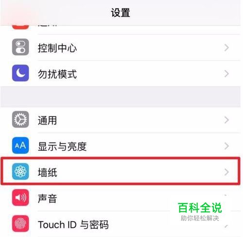 打开手机【设置】,打开后点击【墙纸】选项。(如下图)