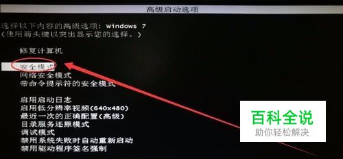 (二)查看系统日志,查找问题并解决 在上一步中,用箭头键选择“安全模式”,并按下键盘上的回车键进入。