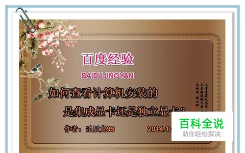 购买计算机时或者已经买回来了的计算机,我们想看看计算机安装的是集成显卡还是独立显卡,如何查看呢?下面介绍四种查看的方法:
