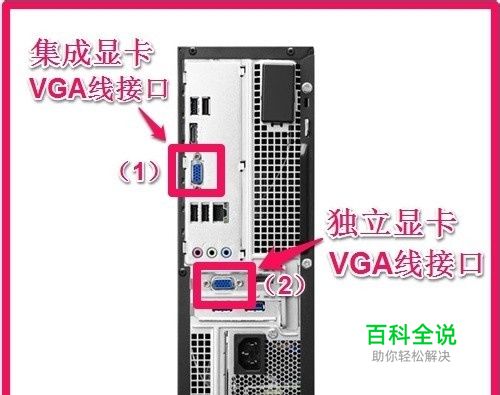 查看计算机显卡的方法 第一种方法:查看主机连接显示器VGA线连接的接口。 如图:VGA连接线连接在主机(1)接口的,计算机显卡是集成显卡; VGA连接线连接在主机(2)接口的,计算机显卡是独立显卡;