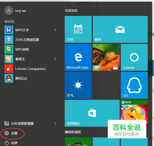 在【开始】菜单下,点击选择【设置】选项。(如图所示)