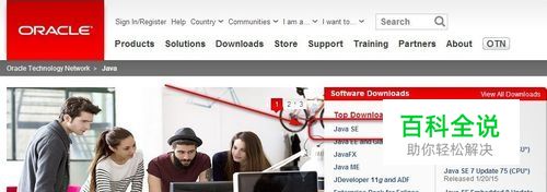 第二步,进入Oracle主页,由于Sun公司已经被Oracle收购,现在Java的所有软件都是通过Oracle网站来下载。点击如图示的Java SE。