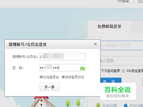 进去“免费邮箱”打开后注意到,下面有个通过微博登录。输入账号密码就可以登录了。