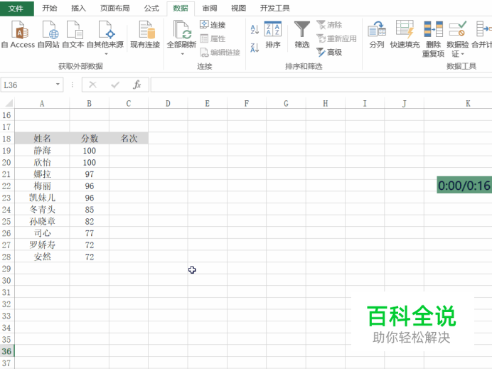 得到第一条记录的排名。 回车键Enter即可得到第一条记录的排名。