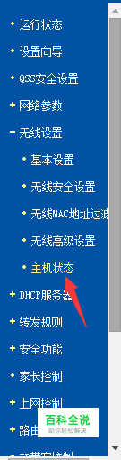 登进去会出现下面这么多的选项 找到无线设置——主机状态。