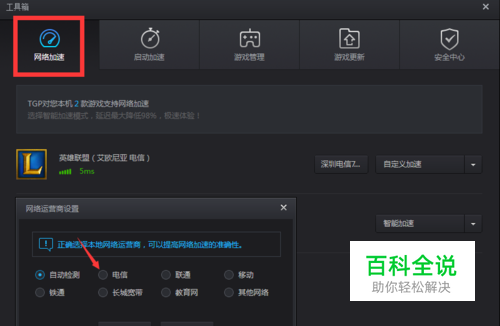 TGP方法3、正确选择本地网络运营商 可以尝试直接选择你的大区网络,比如电信大区选择电信。