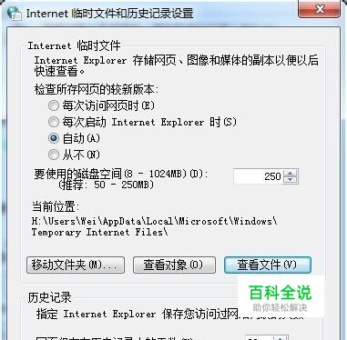 先找出Internet选项,常规-浏览历史记录-设置