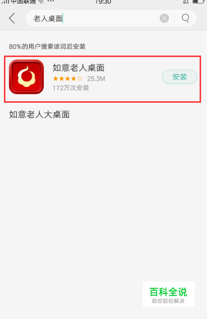 在【软件商店】搜索“老人桌面“,进行相关下载安装。