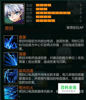 首先,我们先看看奇牙的技能介绍和属性成长,然后根据技能说明定位该英雄。