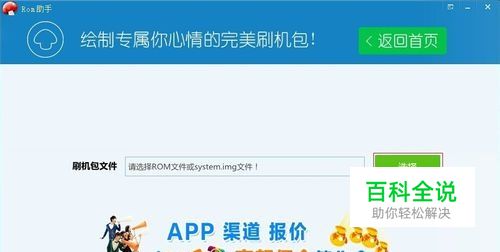 下载好你需要的线刷包,解压好,然后打开已经下载安装好ROM助手,点击“系统精简”,然后接下来点击“选择”加载线刷包解压后的文件夹内的system.img,如下图:
