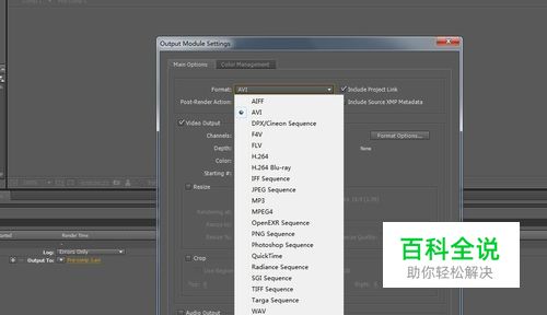 再有就是在“格式选择”对话框里面,选择AVI或者是Quicktime,在下面的“视频输出”对话框里面,我们可以根据需要选择是否带“透明通道”进行输出。