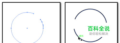 鼠标放在圆边缘上,显示出路径,在路径第一个目标位置上,点击一下,生成一个锚点。如图中所示。
