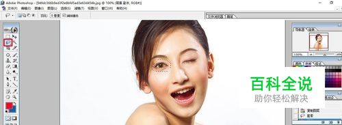 因为这是把睁着的左眼复制到右眼,为了隐藏修复痕迹,在菜单栏选择编辑--变换--水平翻转,按ctrl+t调出变形工具,把眼睛调整至合适位置。