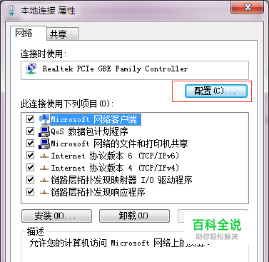接着点击属性,选中网络客户端这一栏,然后选择“配置”