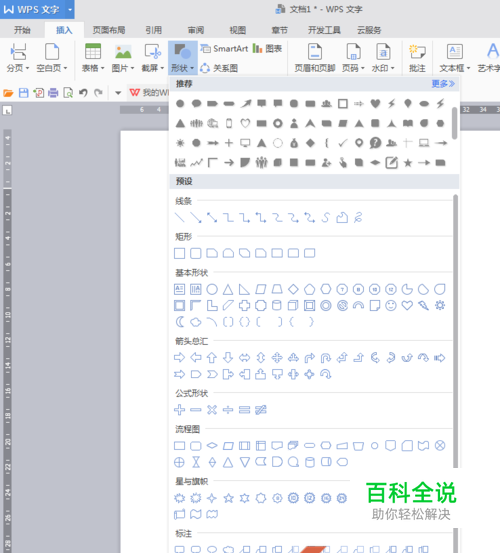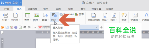 点击wps插入选项卡中图示的【形状】下拉按钮。