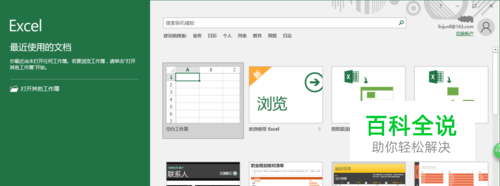 启动Excel 2016,选择打开工作簿选项或工作簿模板选项执行打开、新建工作簿的操作。