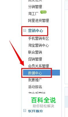 进入自己的卖家中心,然后往下拉滚动条,看到有一个左侧有一个营销中心的栏目,里面有个“数据中心”: