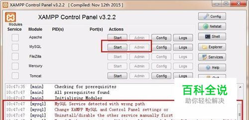 下面操作吧 先来看看XAMPP中的情况 吧 “ 10:47:47 [mysql] MySQL Service detected with wrong path 10:47:47 [mysql] Change XAMPP MySQL and Control Panel settings or 10:47:47 [mysql] Uninstall/disable the other service manually first 10:47:47 [mysql] Found Path: c:\xampp\mysql\bin\mysqld.exe --defaults-file=c:\xampp\mysql\bin\my.ini mysql 10:47:47 [mysql] Expected Path: f:\xampp\mysql\bin\mysqld.exe --defaults-file=f:\xampp\mysql\bin\my.ini mysql ”