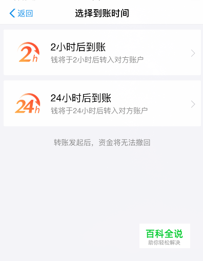 根据个人需要选择【2小时后到账】或者【24小时后到账】。